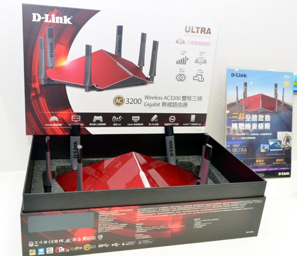 此次 D-Link也展出了市場現行最高規格 AC3200 最新旗艦路由器機種 DIR-890L,採用雙核處理器以及三頻無線網路,外型有如高科技金字塔,除了現場實機展出讓民眾嚐鮮體驗外,首購價9,999元現場購買還有驚喜優惠活動。