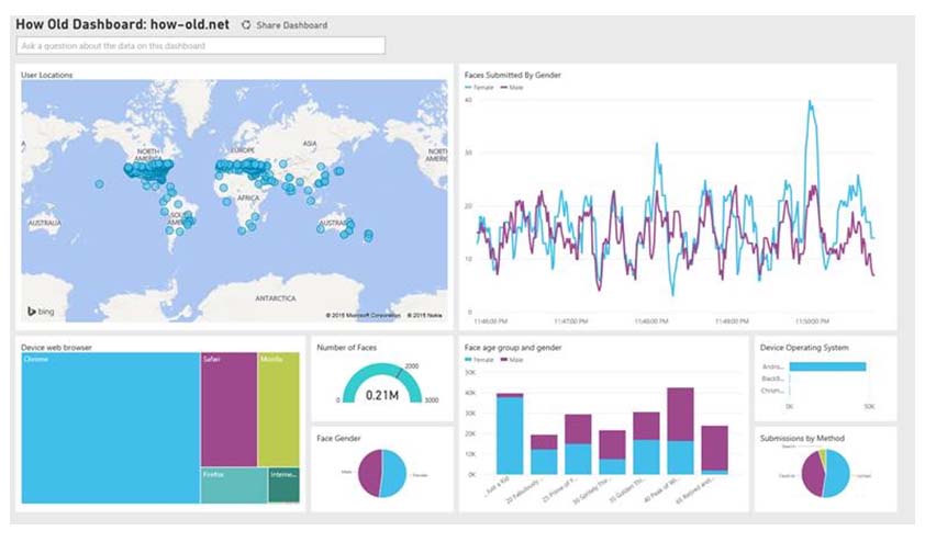 根據台灣微軟某位主管表示,台灣人是否看起來比較年輕?這仍是個謎,但根據她這幾天所看到的結果,好像台灣人普遍看起來年輕很多 (前提是只要不要亂做鬼臉或是拍照的環境光線太暗)。但是,如果您真的有心想要開發新的App來統計一下,也有好用的工具輔助可做圖表分析, PowerBI絕對是您不二的選擇: http://www.powerbi.com。