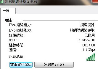 在訊號良好狀況下,A 電腦的 DWA-192 無線網卡可抓到 1.3Gbps 速度: