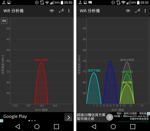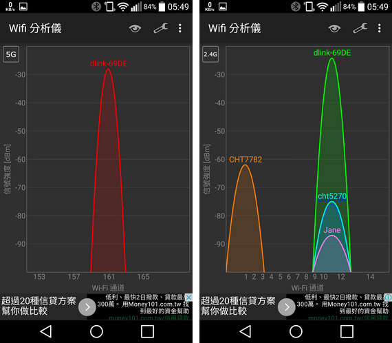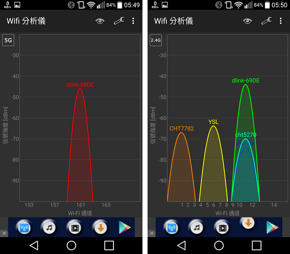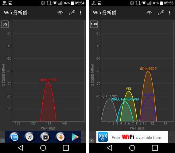 接下來我們使用手機的 WiFi 分析儀 APP,來看看 DIR-895L 的訊號狀況: