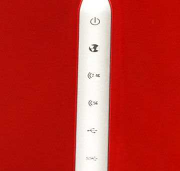 DIR-895L 機身中央凸起的空間感設計,除了視覺效果更加立體外,更重要的就是優化了散熱能力。在中線則有簡潔的燈號顯示,可讓目前的無線頻段(2.4GHz/5GHz)、連接狀況一目瞭然: