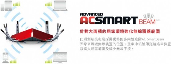 另外,DIR-895L 也內建了 AC SmartBeam 智慧波束特殊功能,簡單的說就是讓訊號能集中往使用裝置的方向傳輸以強化傳輸效能並減少對其他家用設備的干擾: