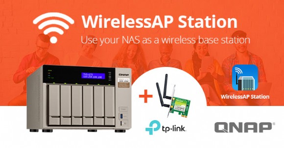 QNAP 發布 WirelessAP Station 應用程式,讓 QNAP NAS 搖身一變成為最方便的無線基地台。使用者可安裝指定 TP-Link 無線網路卡至 QNAP NAS PCIe 插槽 (初期支援 TVS-x73、近期將會擴大支援其他升級至 QTS 4.3 的 x86 機種),即可讓手機、筆電等行動裝置同享無線網路服務,並直接連線 QNAP NAS,迅速開啟 NAS 中的豐富應用與各項娛樂。