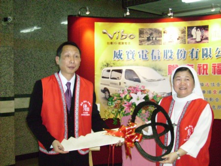 為落實回饋社會、關懷弱勢族群的經營理念,威寶電信繼7月捐贈花蓮門諾醫院一輛山地巡迴醫療車後,昨(23)日再捐贈一輛山地醫療服務車給嘉義聖馬爾定醫院,方便嘉義偏遠山區地民眾求醫、就診,希望能因此造福眾多民眾。捐贈儀式在天主教嘉義區主教洪山川神父見證下,由威寶電信王柏堂總經理將車鑰匙致贈給聖馬爾定醫院陳美惠院長,雙方誓言將善用這輛山地醫療服務車,盡最大能力服務需要照顧的民眾。
