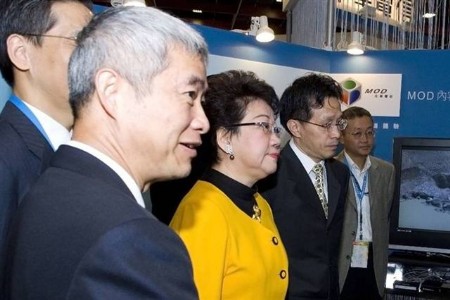 2007年台北影像節「台北國際電視、電影暨數位內容展」今(23)日在世貿一館隆重登場,副總統呂秀蓮、新聞局長謝志偉在中華電信董事長賀陳旦的陪同下參觀中華電信MOD體驗區的展覽攤位。