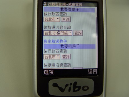 行動看屋蔚成風潮!台灣3G領導廠商-威寶電信昨(20)日表示,2007年初與全國最大房市資訊情報網--「吉家網」合作,推出的全國第一個結合『LBS行動定位尋屋』及『影音看屋』功能的「行動吉家網」服務,整合台灣不動產交易中心的強大物件資料庫,每日彙集來自全國各大房屋仲介業者多達六千多筆的最新房地產資料,讓消費者只需透過威寶3G手機,就能隨時隨地輕鬆掌握最豐富完整的房市動態影音圖文資訊,推出至今已有數萬人次到訪,瀏覽率始終佔VIBO行動網生活資訊類服務之榜首,幫助許多購屋、租屋族買屋、賣屋更有效率,也為房仲業者帶來可觀商機。