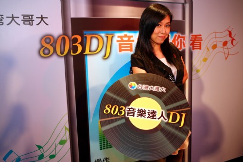 向來精研電信科技、注重效率的台灣大哥大策略長董建成與有「流行音樂教母」之稱的黃韻玲在21日的發表會上,展開了一場「理性」與「感性」的精彩對話,並親自撥打「803」再按「視訊電話」鍵,順利從手機下載音樂達人DJ獨家上線的音樂。