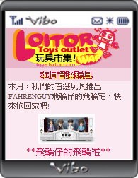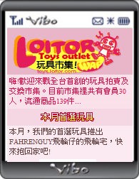 台灣3G業者威寶電信昨(10)日宣佈與利通資訊(Leadcomm)合作,推出全台首創手機線上公仔及玩具交換/拍賣服務-「玩具市集」,運用威寶3G行動網路優勢,建構移動式的玩具虛擬交易平台,即日起威寶用戶只要透過3G手機連上「VIBO行動網」登記加入「玩具市集」會員,每月繳交30元月租費,即可進行玩具商品的線上交換與拍賣,隨時隨地用手機將玩具拍照即可MMS上傳、標價並開始進行競標拍賣或交換。