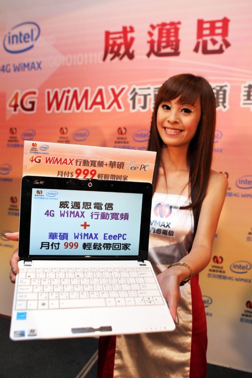 為滿足消費者更多的行動寬頻上網選擇,威邁思電信於今日發佈最新促銷方案,以「獨家全球首賣內建Intel WiMAX華碩EeePC」為號召,消費者申辦威邁思4G WiMAX行動上網服務,選擇搭配華碩EeePC 1001PG,只要月付$999(含每月4M/2M吃到飽月租費),就能夠將華碩WiMAX EeePC 1001PG 輕鬆帶回家。此次威邁思電信與華碩的再度合作,英特爾的促成佔了極大的助力,而從這次三方的再次合作也說明了:英特爾以行動證明,持續對台灣的WiMAX產業全力支持。