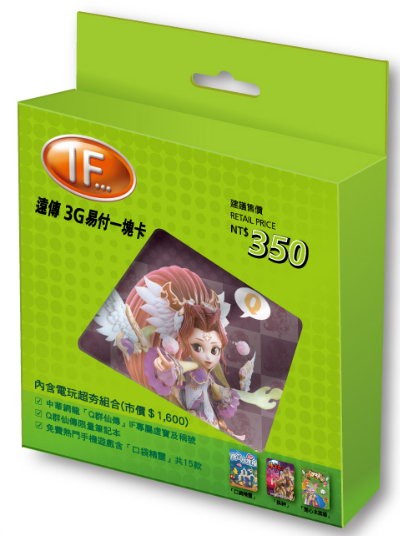 遠傳與遊戲廠商中華網龍合作推出「IF電玩 我最嗆」促銷包,內含350元通話費及最夯線上遊戲「Q群仙傳」IF專屬虛寶及稱號、Q群仙傳限量筆記本、免費熱門手機遊戲「口袋精靈」、「誅神online」、「開心水族箱」.等共15款,市價1600元的促銷包只要350元即可輕鬆帶回家,獨家限量好康要搶要快!