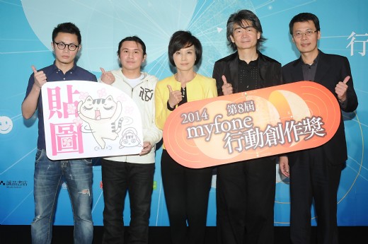 順應貼圖熱,今年myfone行動創作獎特別新增貼圖組,首獎8張貼圖獎金15萬元,還有最佳年度情緒獎,得獎作品有機會在M+上架,讓作品在行動世界中穿梭,隨著即時通訊軟體散布到全世界,展現台灣的文化軟實力。為多面向觀察貼圖,評審來自不同領域,包括創作「雙響炮」、「澀女郎」,在兩岸都享有盛名的漫畫大師朱德庸,畫風逗趣簡單中帶有幽默,網路火紅的插畫家輔大猴,以及曾為張惠妹、周杰倫、五月天等藝人專輯做視覺包裝,並為書籍、展演設計封面的聶永真。