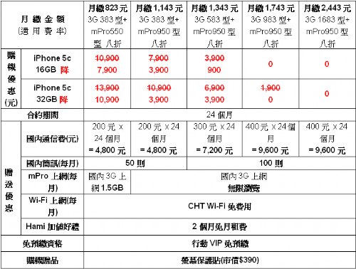 iPhone 5c全民同享降價$3,000 最高再送$9,600國內通信費