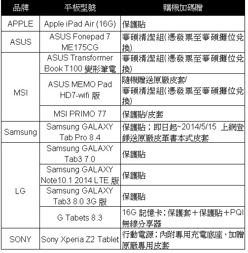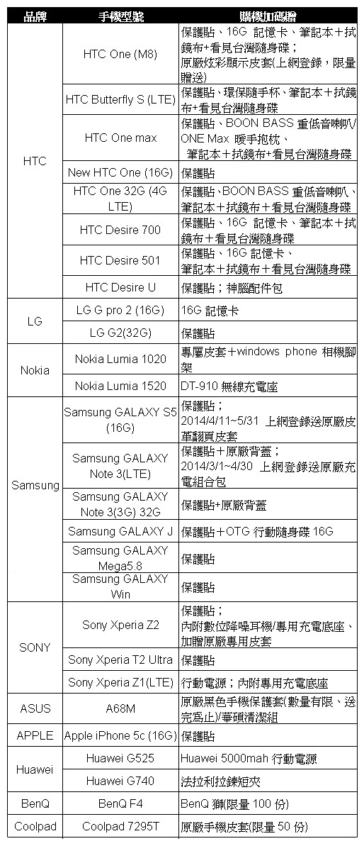 *2014春季電腦展現場各優惠方案不可與其他優惠重複申辦,詳細購機先繳納金額等包裝內容、各場次購機方案實際之適用機型及方案購機價,請以2014春季電腦展活動現場公告為準。
