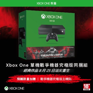 遠傳大寬頻搶先爭取開賣限量「Xbox One單機戰爭機器究極版同捆組」加贈主機貼,消費者申辦Xbox One光纖上網方案,依使用需求任選300M/100M、100M/40M及20M/5M方案,即可以$4,990將即將開賣的限量「Xbox One單機戰爭機器究極版同捆組」帶回家,遠傳大寬頻加碼再送全國FET Wi-Fi免費用到飽。
