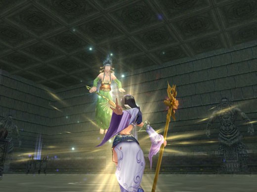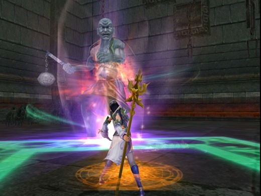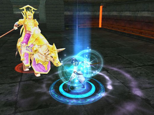 - 土魔皇-【鐵山彪】:擅長物理防禦及範圍攻擊。當施放「金剛護體」之術後,在一定時間內保護己身不受傷害;而範圍攻擊「飛球攻擊」,發動前地面會出現方形法陣標示釋放範圍,勇士們可得小心避開,避免大量失血。