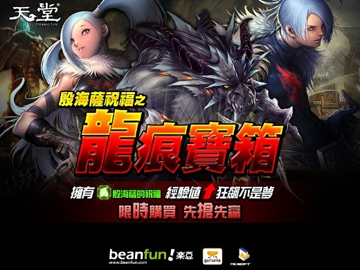 為慶祝遊戲橘子旗下經典線上遊戲《天堂》11週年,繼8、9月「隱魔狂襲」、「煉金魔法娃娃系統」等活動廣受玩家歡迎後,9月27日將再推出備受期待的全新「殷海薩祝福之龍痕寶箱」。玩家只要在活動期間取得「龍痕寶箱」,即可源源不絕補充「殷海薩的祝福」的能量,想要經驗值狂飆就趁現在!