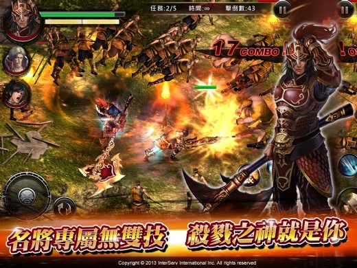 玩家肩負征戰使命,穿越千年,進入三國著名戰役,免費體驗超過200個關卡,各種難度與風格互異的歷史場景,點兵用將,橫掃千軍,進而一統天下。