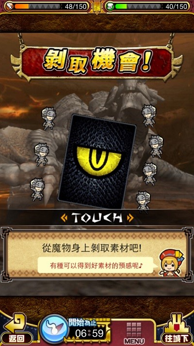 在「大狩獵獵團對戰」中,對魔物進行攻擊需要花費AP,而AP消耗完畢時,有很多方法可以進行回復。首先是每一次「大狩獵獵團對戰」期間都可以使用一次的60AP免費回復。再來還能夠透過激勵團友,為彼此各回復5點的AP。另外在探索任務的部分,有AP回復卡可能出現在探索過程中,每完成一個區域的探索也能夠獲得少量的AP回復;若能夠在探索過程中擊倒BOSS,也能夠回復相當的AP值。還有兩個AP回復的手段,分別是探索中取得的種子,以及每日任務的達成獎勵。種子除了每個階級有不同的AP回復值以外,若有團友協助澆水,則可讓種子回復的AP值增加。運用上述的AP回復手段,獵團全員打滿一個小時的「大狩獵獵團對戰」擊倒成群魔物絕非難事!擊倒魔物的數量越多,無論是剝取的次數或是得到的素材品質都會向上提升唷!