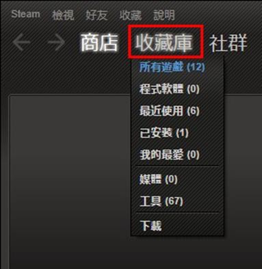 1. 遊戲完整安裝/更新後,請開啟安裝於電腦中的Steam平台程式,登入個人專屬帳號後,點選介面左上方的「收藏庫」。