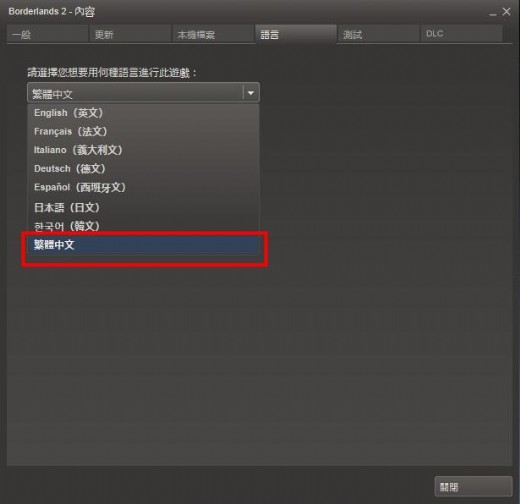 3. 點選「語言」後將語系選單下拉至「繁體中文」。待語言更新檔下載完成即為繁體中文化遊戲內容。