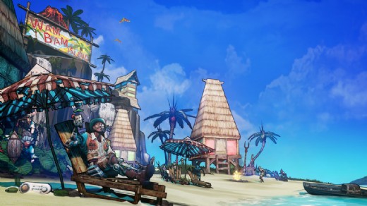 如果你能順利擊敗Crawmerax Jr.,你將獲得戴上他的頭的殊榮 – 不過,得先把他的頭縮小,才能套上你角色的脖子,畢竟你不是80英呎高的蟹蟲。每位角色也可以獲得新的海灘主題外觀,包括穿著80年代夏威夷衫的Axton,還有某位使雙槍的尋寶獵人做好了參加濕T恤比賽的裝扮。喔,對了,記得帶上你的防曬乳!
