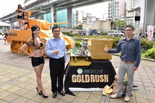 台灣微軟Xbox團隊於5/2至5/11,連續十天在台北新光華數位天地推出「Xbox Live淘金熱」玩家體驗活動,除了號召玩家加入Xbox Live金會員享有最全面及優惠的娛樂體驗,更破天荒帶來全台第一輛復刻1:1的黃金坦克「金門之熊」呼應「Xbox Live淘金熱」活動,現場亦首度展出「Xbox Live淘金熱」終極獎項-總價值15萬元台幣的「Xbox Live 淘金熱」寶箱,內容包括100克999.9純金「Xbox Live 淘金熱」紀念金牌、全球限量《TITANFALL》模型組、Xbox 360 特別版金色控制器,以及12個月Xbox Live金會員,讓Xbox粉絲搶先目睹。活動期間消費者並可在現場一次體驗Xbox 360射擊強作遊戲《TITANFALL》、《戰車世界Xbox 360版》及