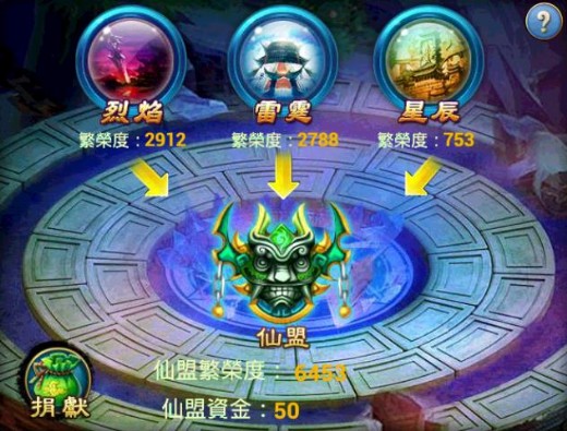當玩家所待的伺服器開服滿30天,系統便會自動解開仙盟系統,玩家可透過完成仙盟日常任務來增加仙盟的貢獻度,當仙盟達到一定的繁榮度時,每月1號將會定期舉辦仙盟選舉,玩家可將手中寶貴的一票投給貢獻度排行前30名的任何一位玩家,系統將會依得票數的高低決定仙盟的聖朝三皇(大聖皇、神皇、仙皇),被委任為大聖皇的玩家,將可任命其他玩家為本月官員,玩家們除了可享有特殊權限外,可獲得額外的獎勵喔!除外,於仙盟中還可額外獲得仙幣,玩家們可利用仙幣來購買相關的商城道具,擁有多樣好康的仙盟系統,將會是本次改版的重頭戲。