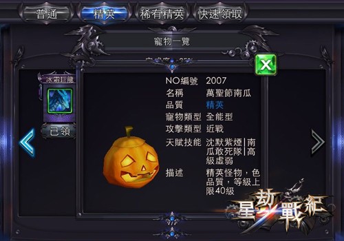碎片可合成期間限定「萬聖節南瓜」及「萬聖節大南瓜」做為戰寵,戰力倍增!