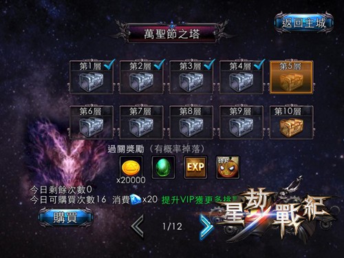 自 10月23 日起至 11 月 6日止,玩家只要至通天塔進行「萬聖節之塔」闖關,通過每關卡有機率獲得【萬聖節銀南瓜碎片】或【萬聖節金南瓜碎片】,關卡等級越高掉落機率越大 !