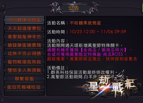 《星劫戰紀》萬聖節限定活動關卡,不給糖就搗蛋!