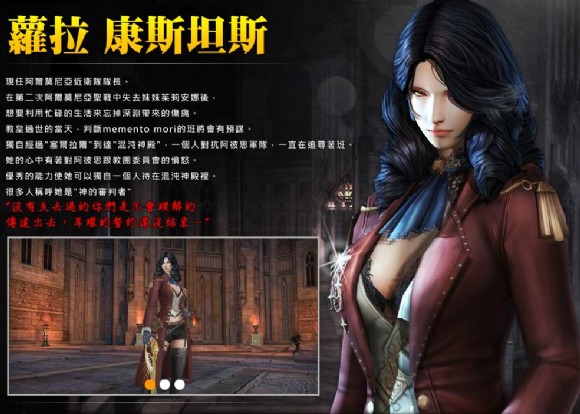 全新角色「蘿拉‧康斯坦斯」,是阿爾莫尼亞近衛隊的隊長,又被稱作是神的審判者。蘿拉的心中對阿彼思以及教團委員會相當憤怒,為了替妹妹報仇,開始對教團展開了調查。玩家在遊戲中陷入危機時,更是多虧了「蘿拉‧康斯坦斯」的幫助才得以脫困,完成本章節的任務後,即能夠邀請蘿拉加入,增加戰力!