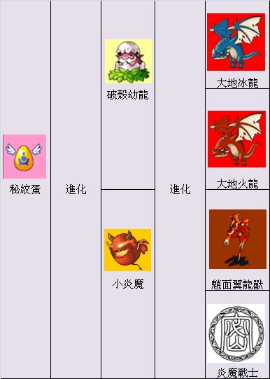 《醉封神》飛行系萌寵其中一種是由秘紋蛋開始進化破殼幼龍或小炎魔。破殼幼龍再進化大地冰龍或大地火龍;小炎魔再進化魈面翼龍獸或炎魔戰士!