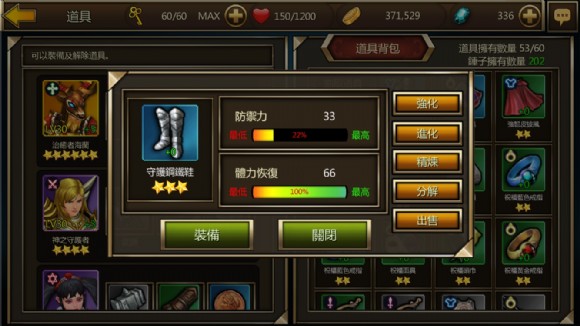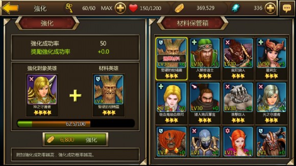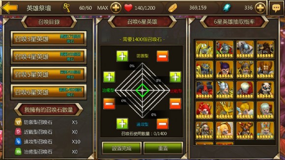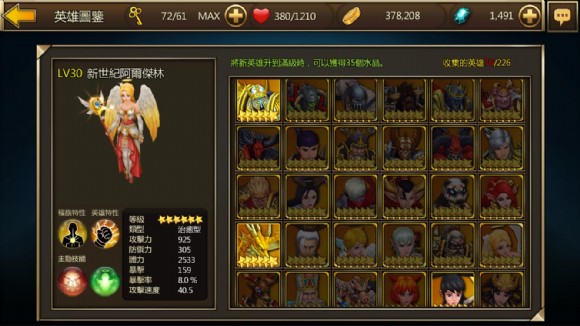 【圖三之一】蒐集越多的英雄能組合出越多功能的隊伍,玩家也就越能應對不同關卡的狀況。養成這些英雄是這款遊戲的核心玩法。