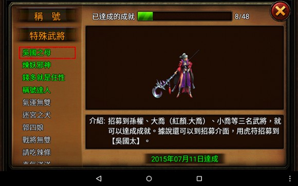 想要獲得這樣一位強勢巾幗女將嗎?玩家透過先行達成特殊武將任務【吳國之母】,招募到孫權、紅顏大喬、 小喬等三名武將達成成就後,至招募介面使用虎符招募,即可獲得三項全能強勢女紅將-吳國太。