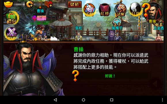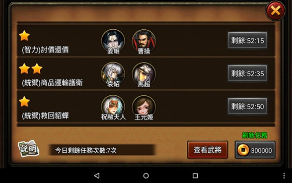 所謂的內政系統即透過派遣閒置中的武將,完成眾多不同類型、每次1小時的內政任務,因此玩家的武將越多就越容易適配任務!派遣相對應特長的武將不但可大大增加任務成功的機率,還有機會刷出高星級任務獲得更豐厚的獎勵。此外,部分武將還有一定的概率於內政任務中學習到強大的專屬技能。