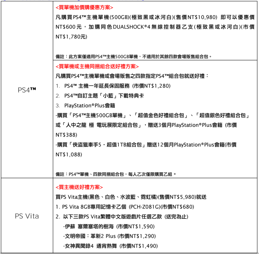 【2016台北國際電玩展 PlayStation®主機優惠方案】