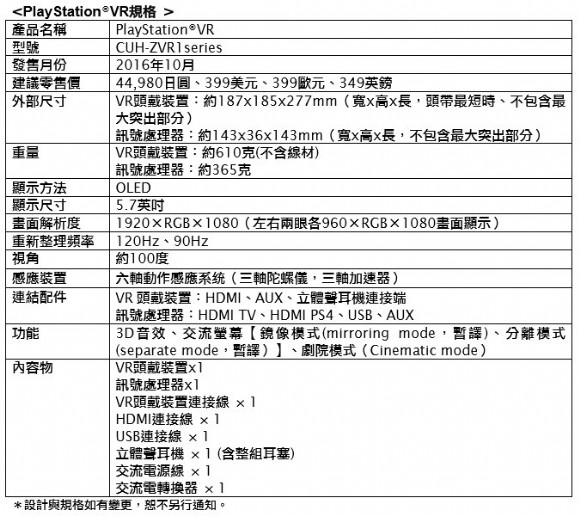 「自2014年在遊戲開發者大會(Game Developers Conference)發表PS VR以來,我們獲得全球玩家熱烈迴響。為了能提供全球玩家充足的數量與豐富的遊戲陣容,我們決定將PS VR定於2016年10月發售。再次感謝所有玩家的等待,敬請期待PS VR將帶給大家的前所未有遊戲體驗。」(SCE 社長暨環球CEO Andrew House)