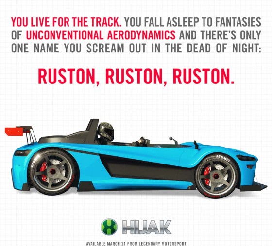 褪去不必要的配件,再加入碳纖材質的海角拉斯頓,是一輛輕量且充滿怒火的小野馬。它也許無法贏得任何安全獎項,但是拉斯頓的超低車身,可以讓您體驗一下與柏油路親密接觸的快感。所以,搭上海角拉斯頓以後請務必坐穩,做好衝過各種急轉彎和超窄通道的心理準備。海角拉斯頓是跑車系列中獨特而又優雅的新成員,您現在可在 GTA 線上模式的傳奇車業中購入。