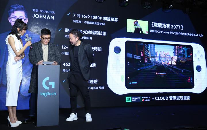 Logitech G CLOUD雲端遊戲掌機發表會現場,邀請到剛發行第二張新專輯的創作歌手高爾宣,帶來超夯神曲《Without You》,點燃現場氣氛之外,也邀請到品牌好友網紅Joeman用Logitech G CLOUD雲端遊戲掌機實際體驗超人氣遊戲《電馭叛客2077》。針對掌機的體驗心得,Joeman興奮表示:「畫面感很讚,光影的渲染也很細緻,沒想到這麼輕鬆就能把極致的畫質帶著走。7吋的大螢幕還有電競等級的按鍵搖桿設計,實在是玩雲端遊戲的最佳硬體選擇。整體的手感和重量設計玩起來非常舒適,僅463公克的重量和最高達12個小時的電池續航力,真的是可以Play All Day。我現在只想趕快放假回家想躺在床上打一整天遊戲,或是把劇追飽追滿!」