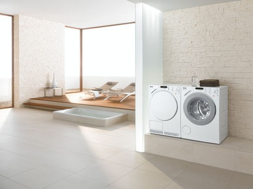 針對現代家庭裡空間不大,Miele設計出符合各種空間設計的洗衣乾衣兩機堆疊工具組,以不到1/2平方公尺的空間,將乾衣機放置在洗衣機的上方(特定的機型)。