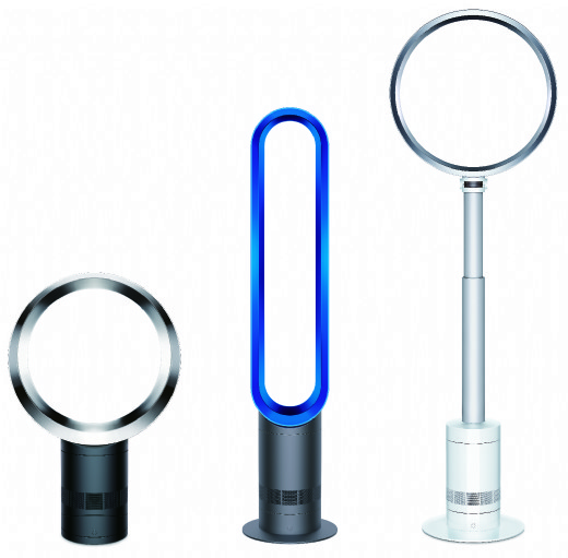 Dyson Cool 風扇,採無扇葉設計、沒有擾人陣風,透過專利技術導引,將吸入的氣流瞬間倍增至15-18倍的氣流送出,搭配室內空調使用,快速循環室內冷空氣,將節能省電的功能極大化。