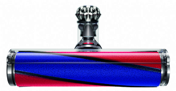 DC74採用『軟質碳纖維滾筒吸頭』,滾筒由柔軟的尼龍及碳纖維線組成。柔軟的尼龍負責把大型顆粒捲入吸塵器,且緊貼地面保持密封空間;碳纖維刷毛則用來清除地板的靜電,以吸走微塵,雙重刷毛讓地板一塵不染。吸頭內部採用集塵槽設計,有效減少大顆粒在吸塵時所產生的動力,讓大碎屑可輕易地被吸走;而滾筒吸頭不單能吸走大型顆粒,同時可於吸塵時緊貼地面,避免吸力減弱,將微塵全部清除。