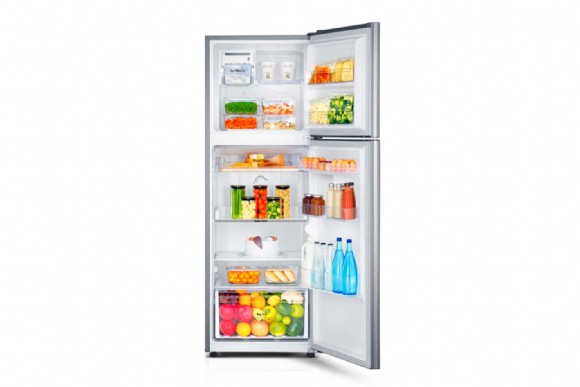 專為小家庭消費者設計的上下門數位變頻科技冰箱RT32,搭載10年保固的靜音節能變頻壓縮機,低噪音且穩定運轉,能自動依據開關門溫度及使用者習慣調整所需的運轉能量,超越政府一級能效標準,一級能效達成率高達122%,年耗電量僅312度比相同容量機種更省電。RT32採用薄型風道,為消費者規劃更具深度的收納空間;對於習慣放置隔夜菜餚的消費者,三星濾淨除臭技術,可減少冰箱異味,搭配可以獨立擺放蔬果的專屬保鮮室,為消費者重新保持鮮食好味道;簡易使用體驗的滑動式層架,順手一拉就能快速找到藏在冰箱內層的食品,讓食物保鮮整理都方便,環繞式氣流設計為食材做層層保鮮。