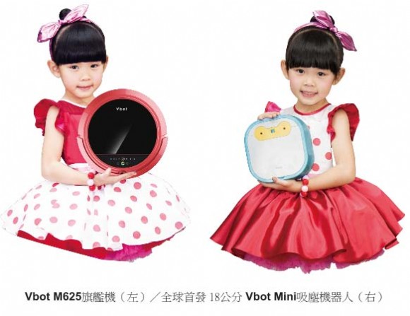 Vbot吸塵機器人在這次台北數位電器展中,邀請來雙胞胎左左右右擔任代言人,簡單方便的遙控器操作介面,六歲的左左右右都能輕鬆操作,Vbot M625訂價24,800元,電器展現場優惠價15,800元,再送迷你吸塵機器人乙台。另外18公分初階款迷你吸塵機器人Vbot Mini展場優惠售價990元。