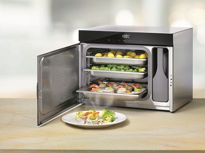 「蒸」與其他烹調方式相比,是公認最不破壞食材養份的烹調方式,Miele DG6010獨立式蒸爐以獨家外部加熱原件,產生百分之百純蒸氣,細膩蒸氣均勻而快速的輕敷食材,能大量保留食材的天然風味與養份。溫度可精準控制40~100度間,除完美烹飪外,每種溫區皆可達到不同用途:低溫解凍、低溫烹調、高溫殺菌或製作滴雞精等,多元功能集於一體。此外,還可一次蒸煮三道料理,味道亦不會彼此混雜,不僅節省時間,更大容量好靈活,30分鐘就能輕鬆做好一桌健康美味的好菜!