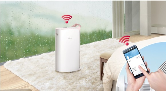 LG全新推出PuriCare 變頻除濕機,搭載Wi-Fi遠端控制功能,讓消費者出門在外也能透過手機輕鬆操控產品開關機、預約除濕、選擇運轉模式、建議運轉模式、查詢濕度歷史紀錄、能源監控及智慧診斷等功能。搭配APP主動推播通知,當除濕機關機狀態時,可自動偵測濕度,濕度到達80%以上時,APP自動跳出通知,消費者即能輕鬆遠控開機。簡單透過LG SmartThinQ APP一指設定,隨時隨地掌控家中空氣濕度。