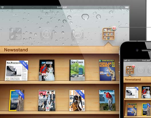 Newsstand 整合了報紙、書籍的訂購與管理,全新漂亮的介面可在資料夾中顯示所有訂購的報紙、雜誌,也提供了購買的專用鍵。並可在背景中自動更新所有報紙、書籍。