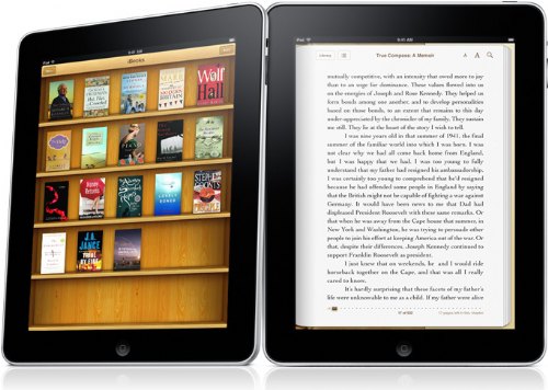 iPad 也提供了電子書功能,但電子書硬體並不稀奇,軟體內容才是重點。Apple 也成立了 iBook Store 線上書店,目前已經有五家出版社: Harper Collins, Hachette, Penguin, MacMilan, 以及 Simon & Shuster 加入服務提供內容,可直接透過 iPad 在 iBook Store 訂購下載。