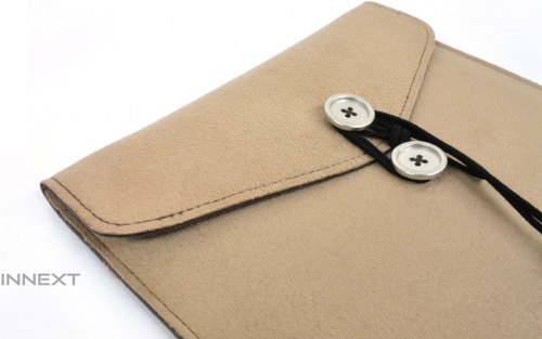 採用超細纖維質材製作的INNEXT Delicate for iPad /平板 超細纖維信封保護套,MIT的堅固縫製工程,特別加強整體結構的強韌度,專業縫製技術與纖細地超細纖維結合,內裡接觸面具有防塵、抗刮功能,外部則以仿古式信封的鈕扣和絲帶便於使用且不輕易鬆脫。