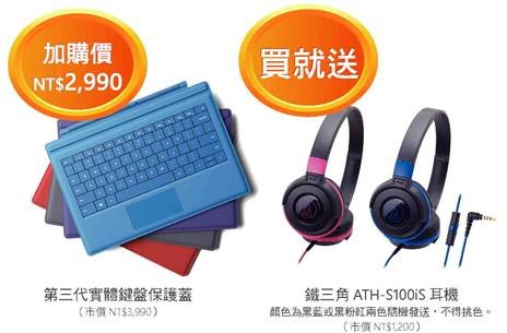 早鳥獨享雙重禮遇 預購Surface Pro 3就送鐵三角耳機 再享實體鍵盤優惠加